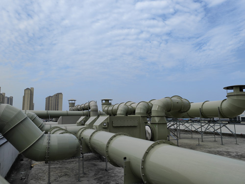 檢測室直接排放物 → 活性氧炭活性炭全自動過濾器中 → 引排風機 → 直接排放